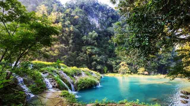 Guatemala is een land van indrukwekkende natuurlijke schoonheid en ecologische contrasten. Van weelderige regenwouden en azuurblauwe meren tot actieve vulkanen en oude nevelwouden, het landschap is net zo divers als zijn culturen. In het noorden ligt het uitgestrekte regenwoud van El Petén, waar jaguars, toekans en oeroude ceibatrees zich een thuis wanen te midden van de mysterieuze tempels van de Maya’s. In het hoogland domineren vulkanen het landschap, waarvan sommige, zoals de Volcán de Fuego, nog actief zijn en zorgen voor een dramatisch schouwspel tegen de horizon.